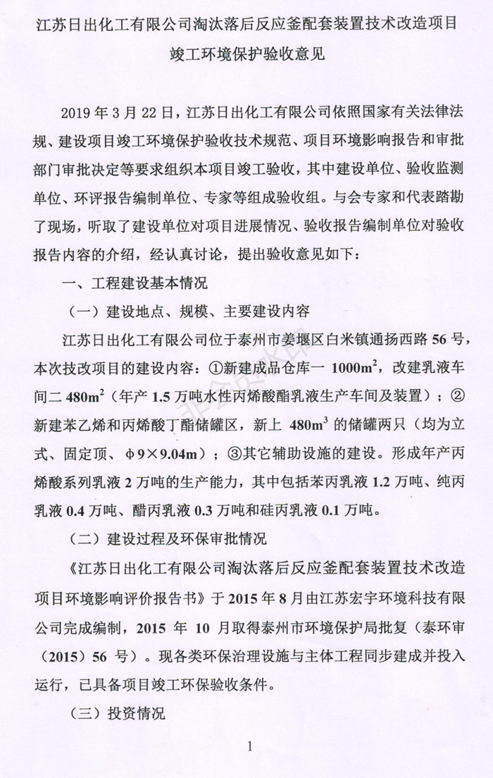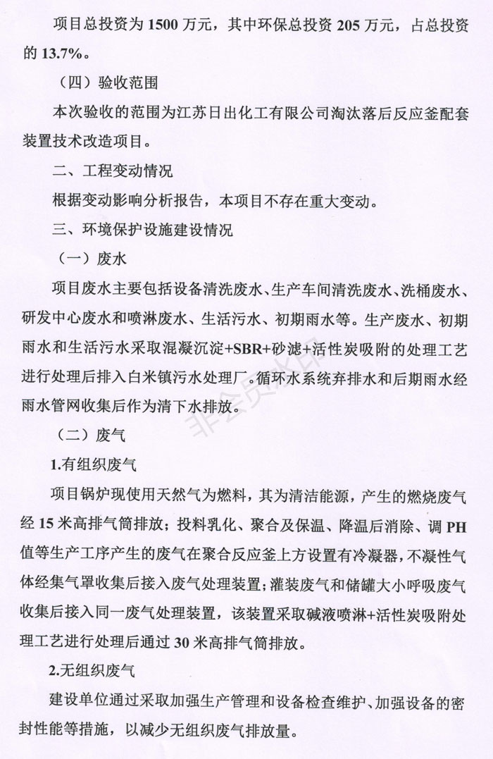 广发体育淘汰落后反应釜配套装置技术改造项目竣工环境保护验收意见